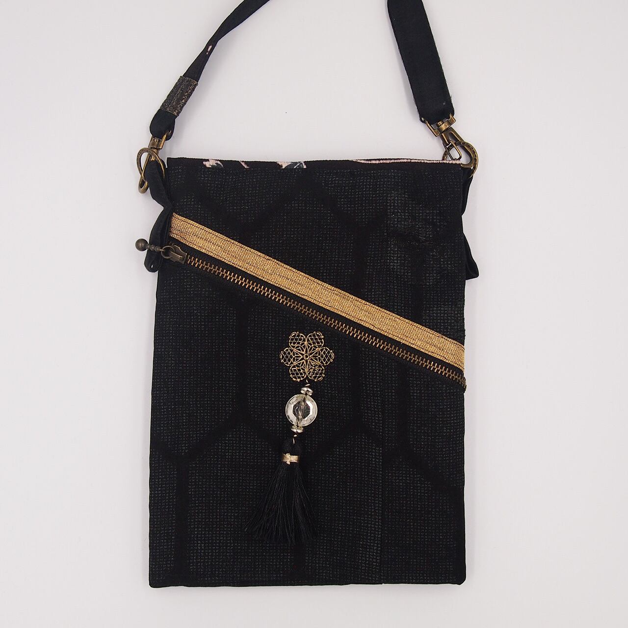伝統の美しさと現代の機能が融合したスマホショルダーバッグが登場しました!和の美を感じる着物生地を使用し、ゴールドとブラックのエレガントな色合いで華やかさを演出。シンプルなデザインながら、しっかりとした作りが特徴です。
